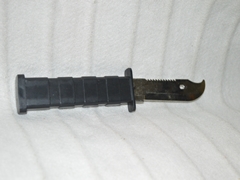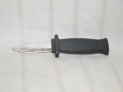 A small black plastic retractable knife. Safe and available to use on production sets without the use of a supervising armourer or stunt/safety advisor.